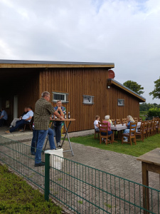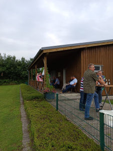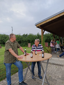Gemeinsam wurden Tische und Stühle aus unserem Vereinsheim auf unseren Vorplatz in die Sonne getragen, während Maik sich schon um den Grill kümmerte. Bei bester Stimmung, köstlichen Würstchen vom Grill und einer bunten Auswahl an leckeren Salaten wurde gemeinsam gelacht, geplaudert und gefachsimpelt.